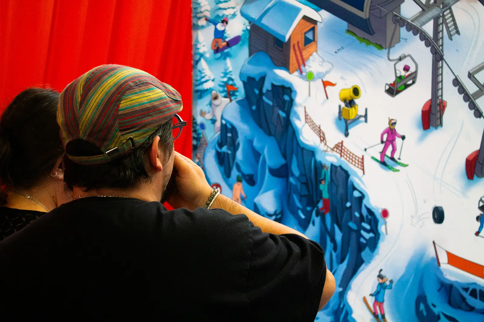 Imaginez une version moderne, géante et ultra immersive du célèbre “Où est Charlie ?”. Face à vous : un cube rétroéclairé de 2 mètres, truffé de détails, d’indices et de personnages à débusquer.